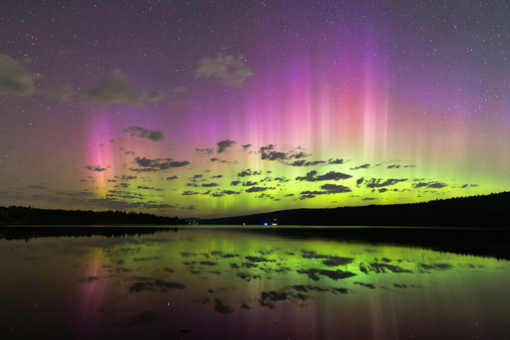 There is a huge, open field at the end of a woods road close to my home. It’s one of my favourite places to view the night sky. One night in July of last year, I headed to the field in hopes of catching a bit of aurora, but arrived to see hundreds and hundreds of fireflies. Fireflies in every direction twinkling as far as the eye could see. The sky was mostly clear overhead, but in the distance, a bank of clouds on the western horizon was also flashing. Lightning and fireflies at the same time: truly unforgettable.
