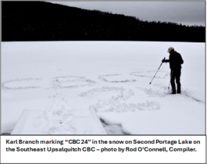 - NB Naturalist Feature: The 2024 Christmas Bird Count in New Brunswick About 1000 people participated in 48 Christmas Bird Counts (CBCs) all over New Brunswick in December 2023 and early 2024. We spent 1750 hours (equivalent to more than two-hundred 8-hour days) covering 1100 km on foot and 13,000 km by car in search of wintertime birds. Count Day temperatures averaged -2ºC at the start and +1 ºC at the end so most count areas had at least some open water. By the end of it, we had found 126,000 birds from 139 species plus another two species during each of Count Week and Count Period for a total of 141 species. This is the lowest number of individuals since 2015, but only one less than last year’s recent high of 140 species.