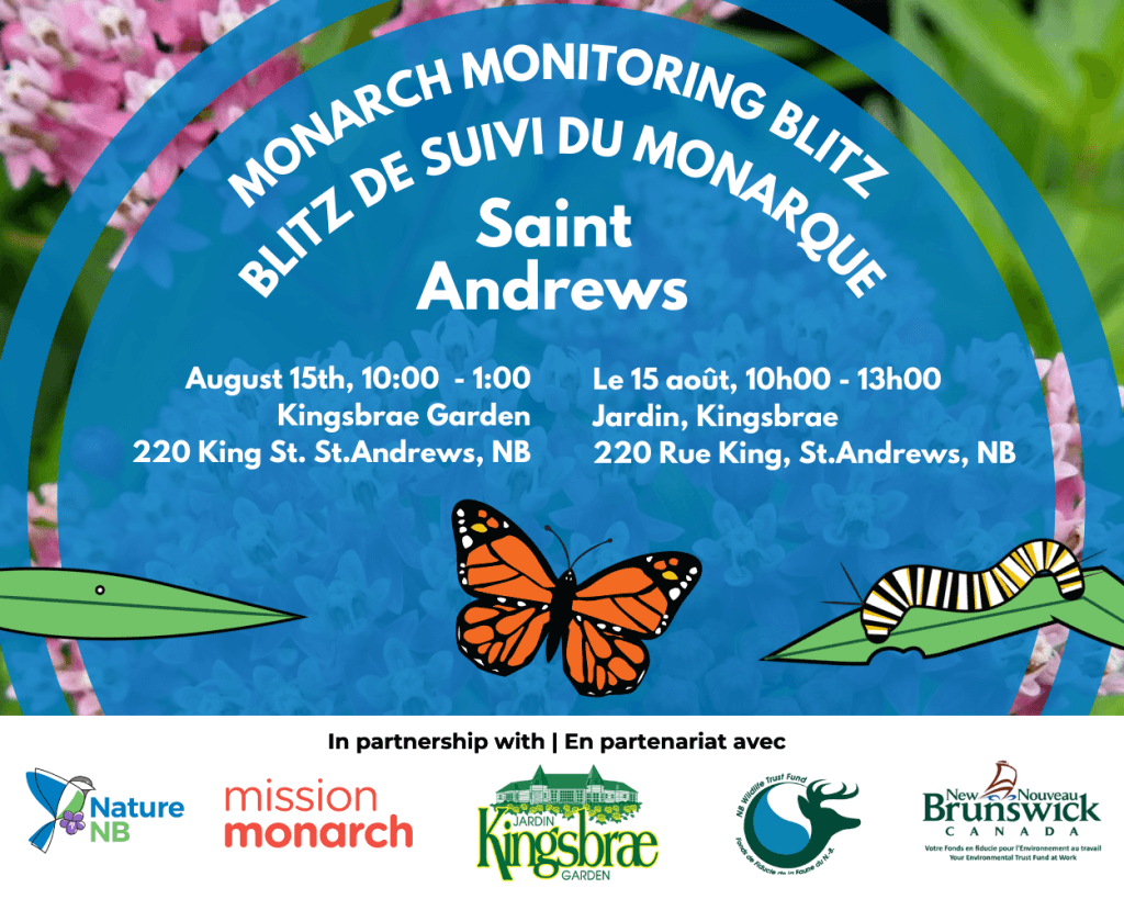 Come help survey Monarch Butterfly populations with us! Join Nature NB and the Kingsbrae Garden for Mission Monarch’s 2025 International Monitoring Blitz. At Kingsbrae Gardens, in Saint Andrews, drop in …