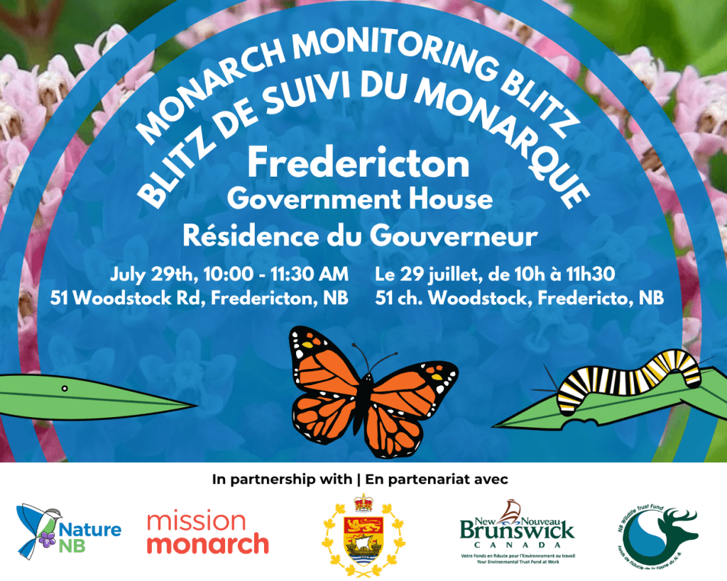 Come help survey Monarch Butterfly populations with us! Join Nature NB and the Government House of New Brunswick for Mission Monarch’s 2025 International Monitoring Blitz. At 51 Woodstock Rd. in …