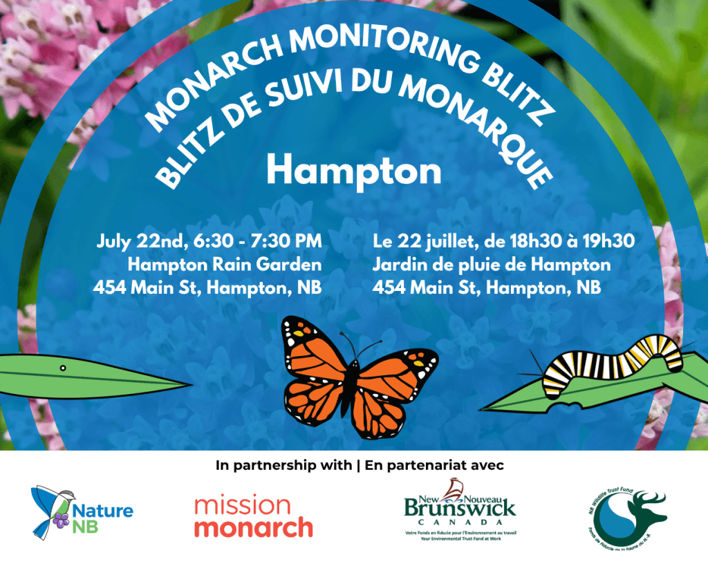 Come help survey Monarch Butterfly populations with us! Join Nature NB for Mission Monarch’s 2025 International Monitoring Blitz. At 454 Main St. in Hampton, from 6:30 to 7:30 PM July 22nd, …