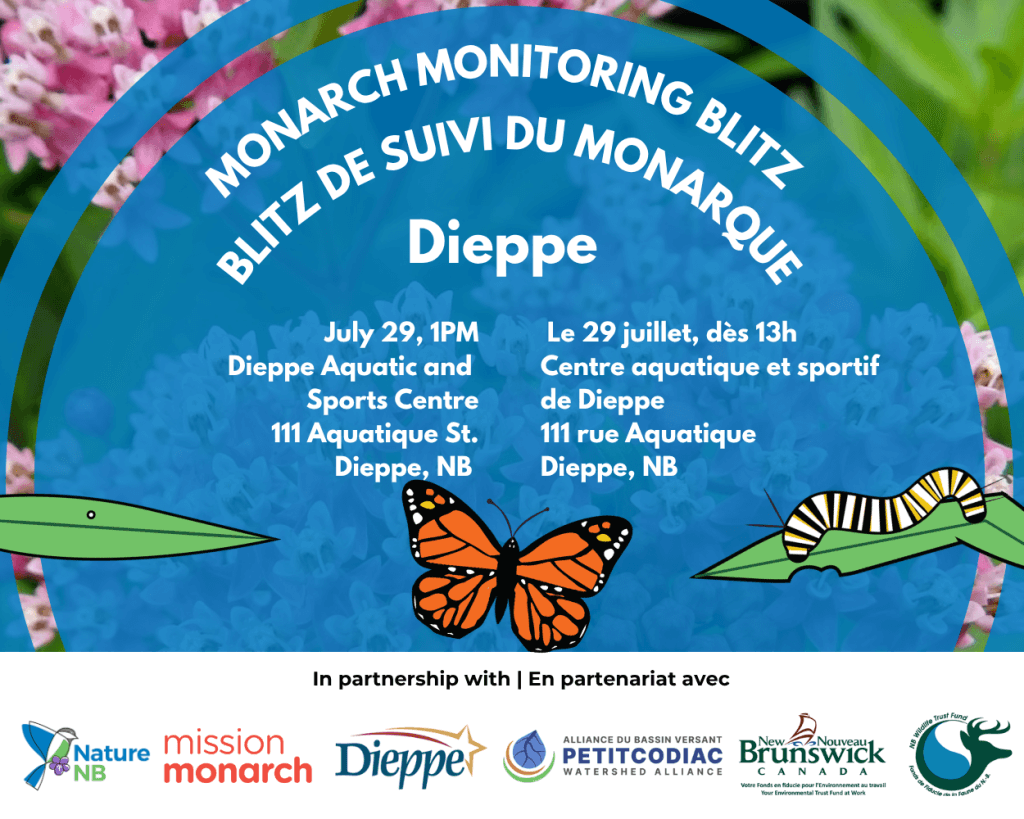 Come help survey Monarch Butterfly populations with us! Join Nature NB, the City of Dieppe and Petitcodiac Watershed Alliance for Mission Monarch’s 2025 International Monitoring Blitz. At 111 Aquatique St. …