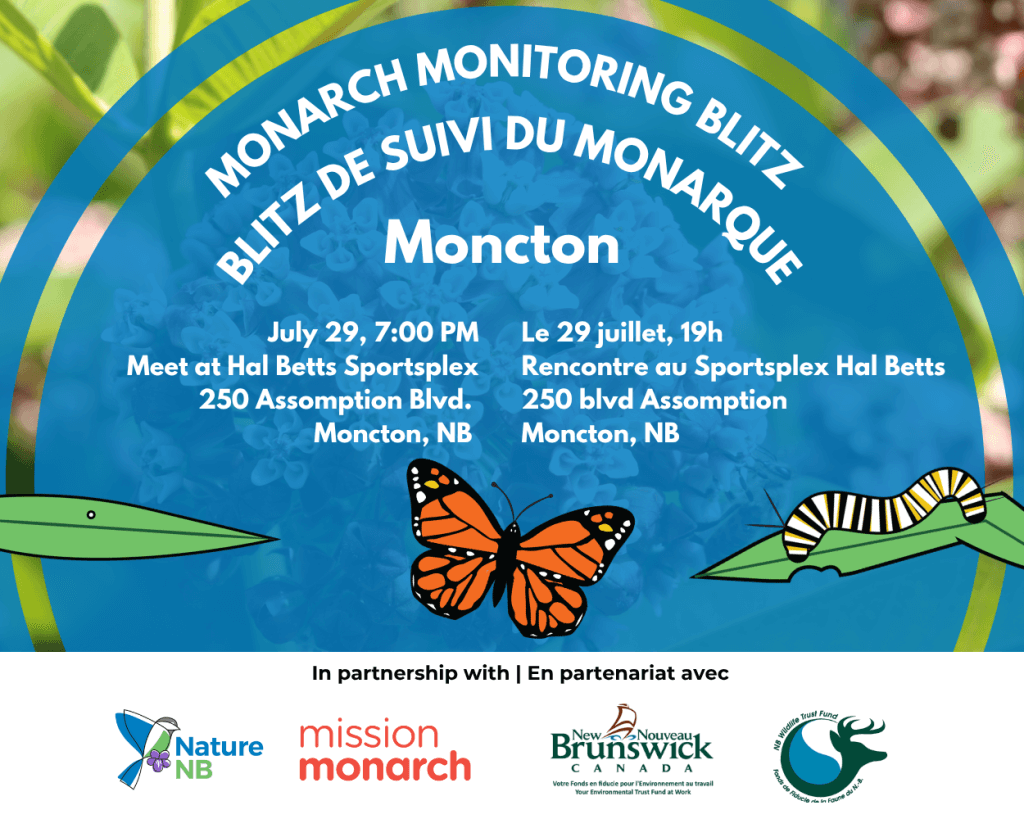 Come help survey Monarch Butterfly populations with us! Join Nature NB for Mission Monarch’s 2025 International Monitoring Blitz. At the Hal Betts Sportsplex (250 Assomption Blvd) in Moncton, at 7 …