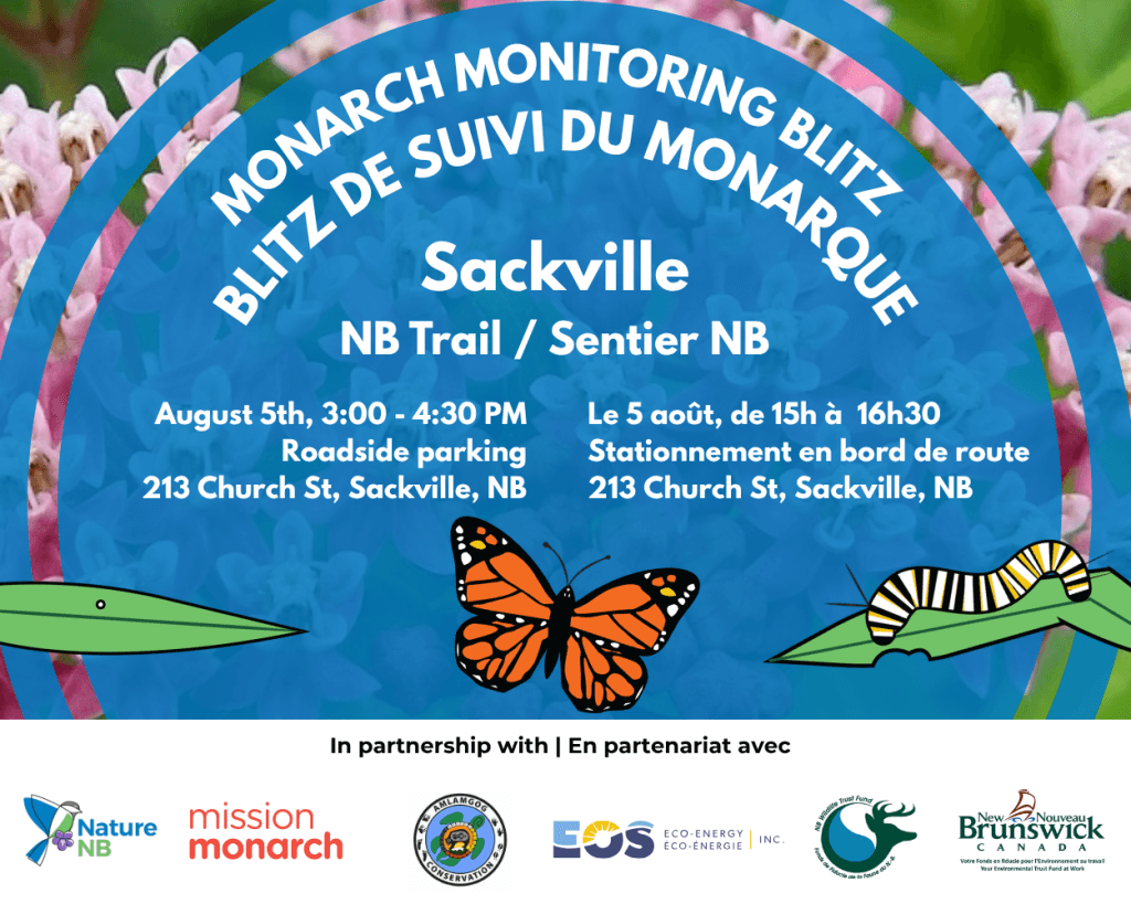 Come help survey Monarch Butterfly populations with us! Join Nature NB, Amlamgog Conservation and EOS Eco-Energy for Mission Monarch’s 2025 International Monitoring Blitz. At 213 Church St. in Sackville, from …