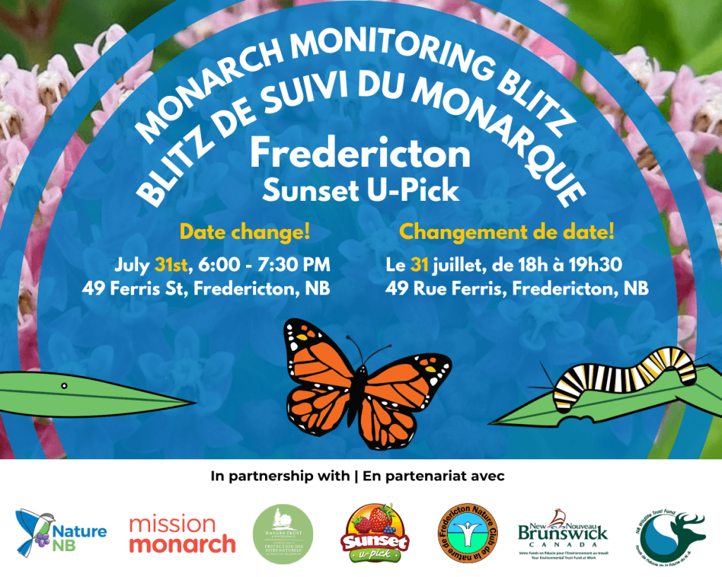 Come help survey Monarch Butterfly populations with us! Join Nature NB, the NB Nature Trust, Sunset U-Pick and Fredericton Nature Club for Mission Monarch’s 2025 International Monitoring Blitz. At 49 …